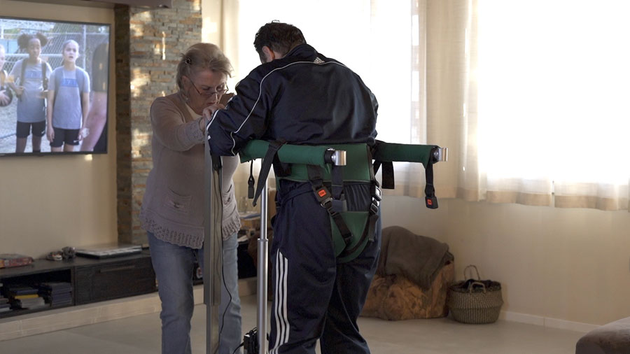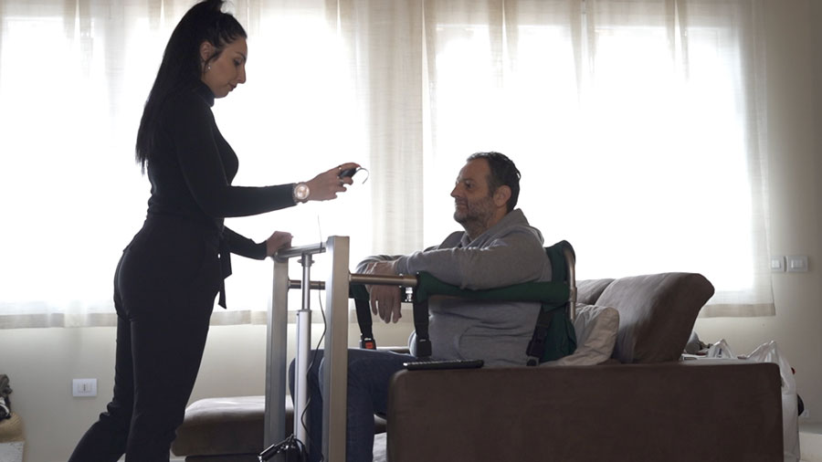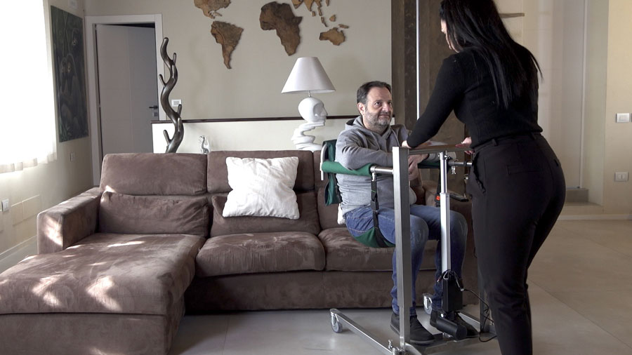 Sollievo Plus permette al badante di sollevare il paziente con movimenti minimi, trasferendolo in ogni parte della casa o fuori, a seconda i suoi bisogni.